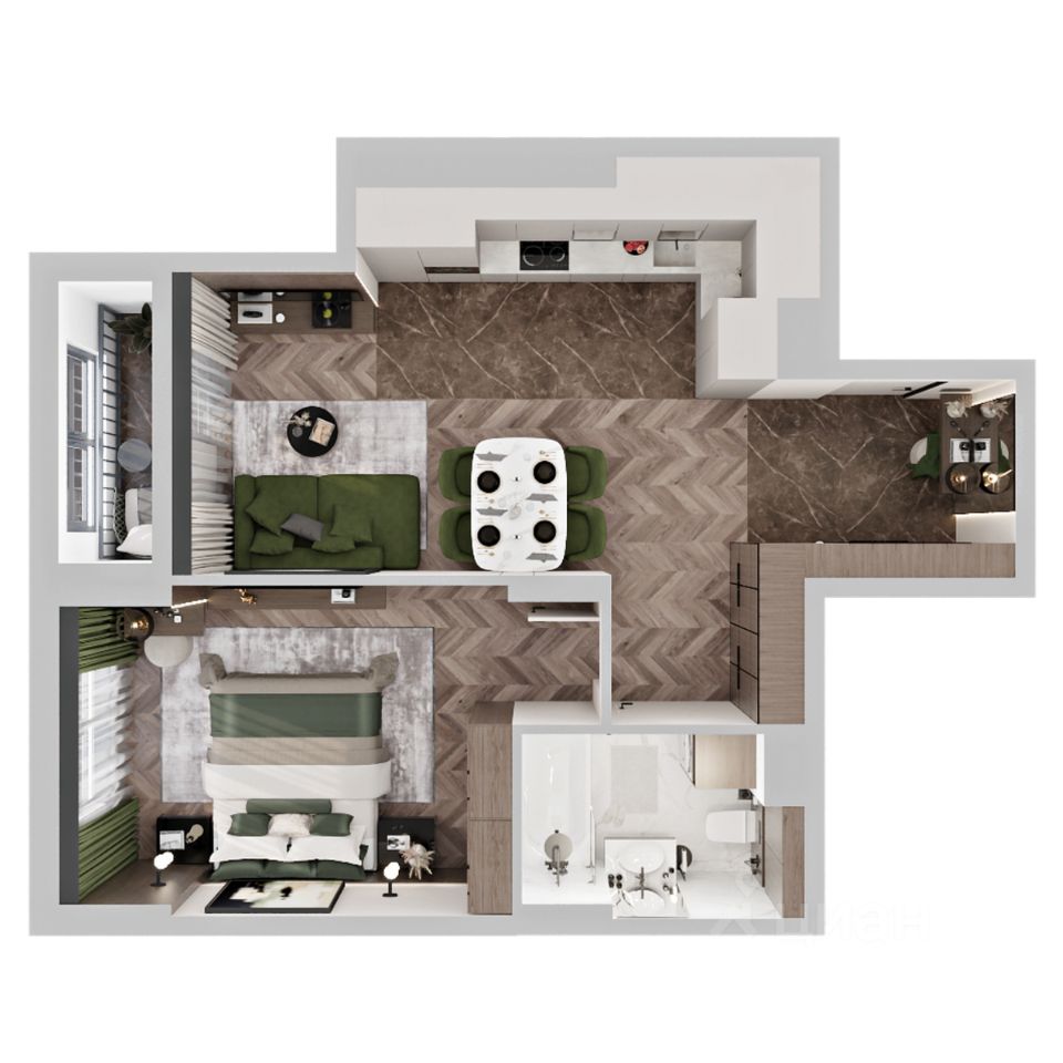 Продаётся 1-комнатная квартира в строящемся доме (Дом 1), срок сдачи: I-кв. 2027, общей площадью 52.9 кв.м., на 5 этаже.