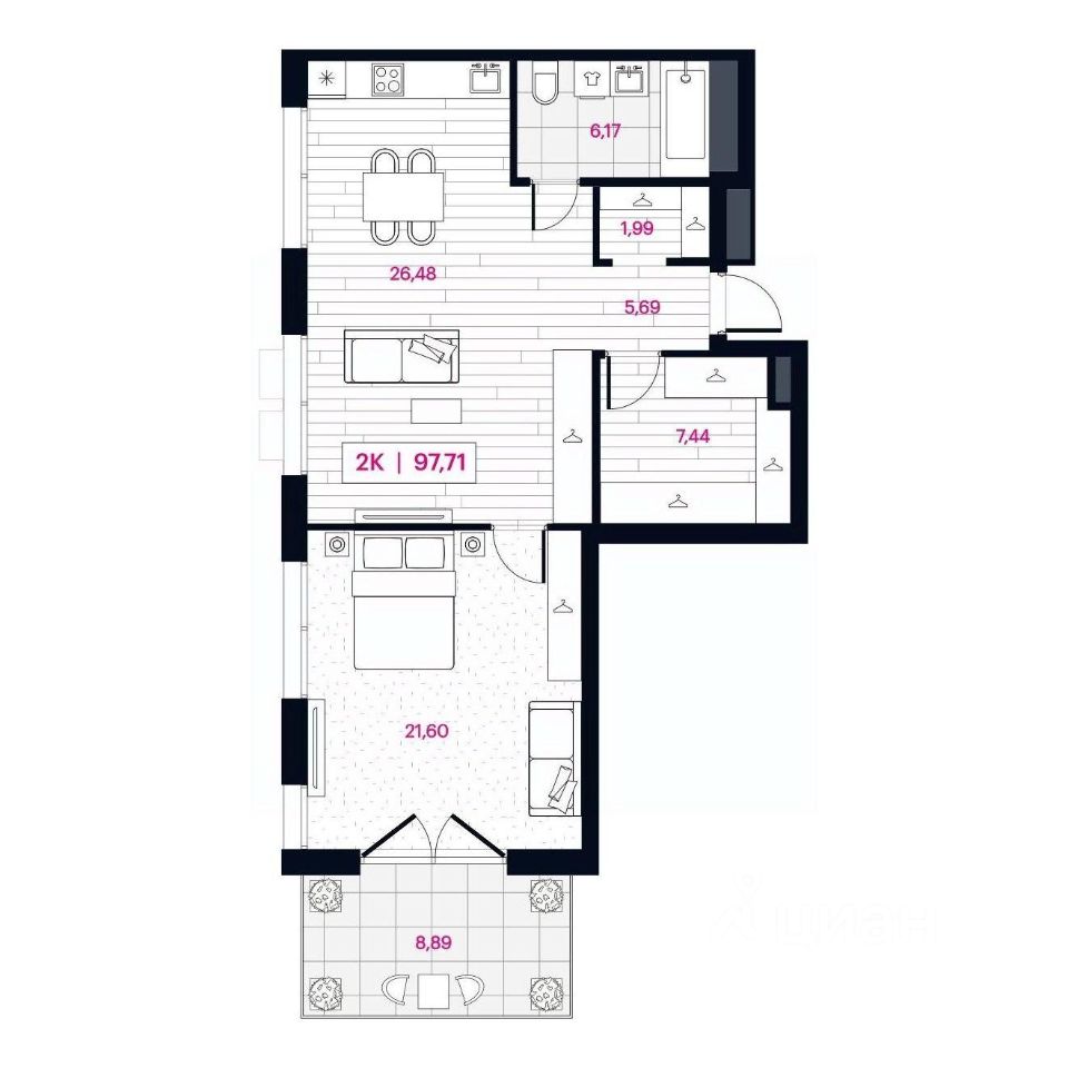 Продаётся 2-комнатная квартира в строящемся доме (Дом 77), срок сдачи: III-кв. 2026, общей площадью 84.96 кв.м., на 2 этаже. Новый жилой комплекс ''Пушкина 77'' от компании ''newton'' расположен в Центральном округе Омска по адресу: ул. Пушкина, 77.