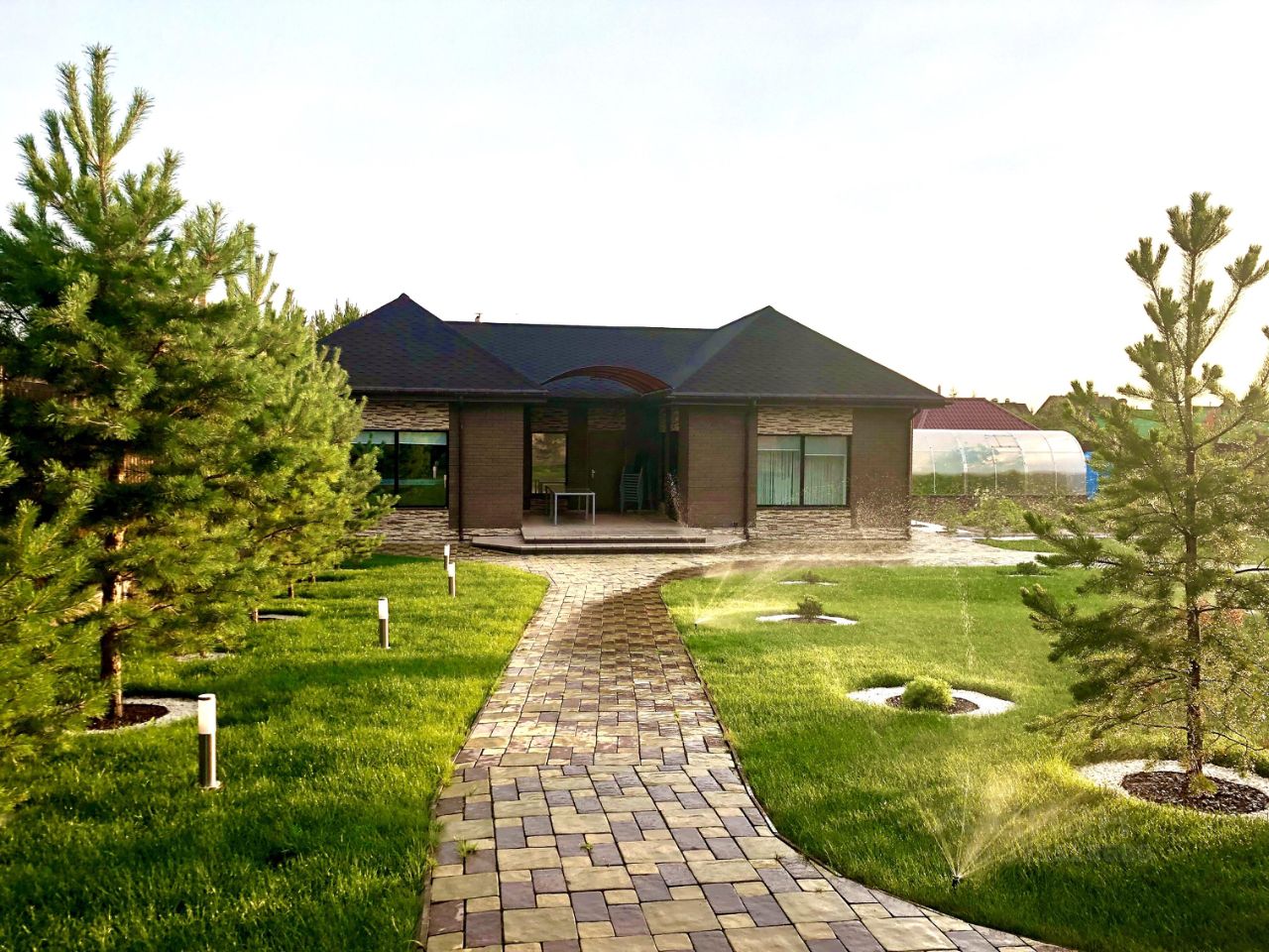 Установлена 7-зонная система автоматического полива газона, огорода и теплицы Hunter (USA). Подведены два водопровода: городской и поливной.