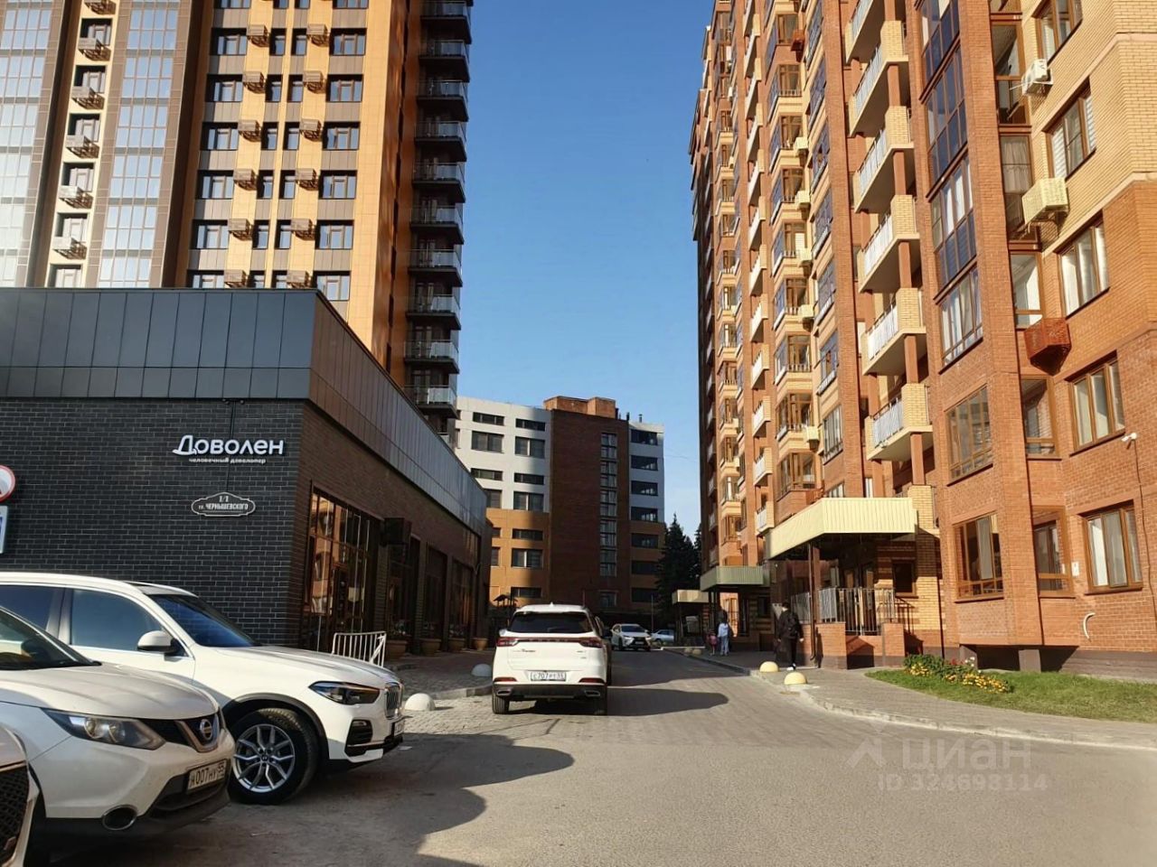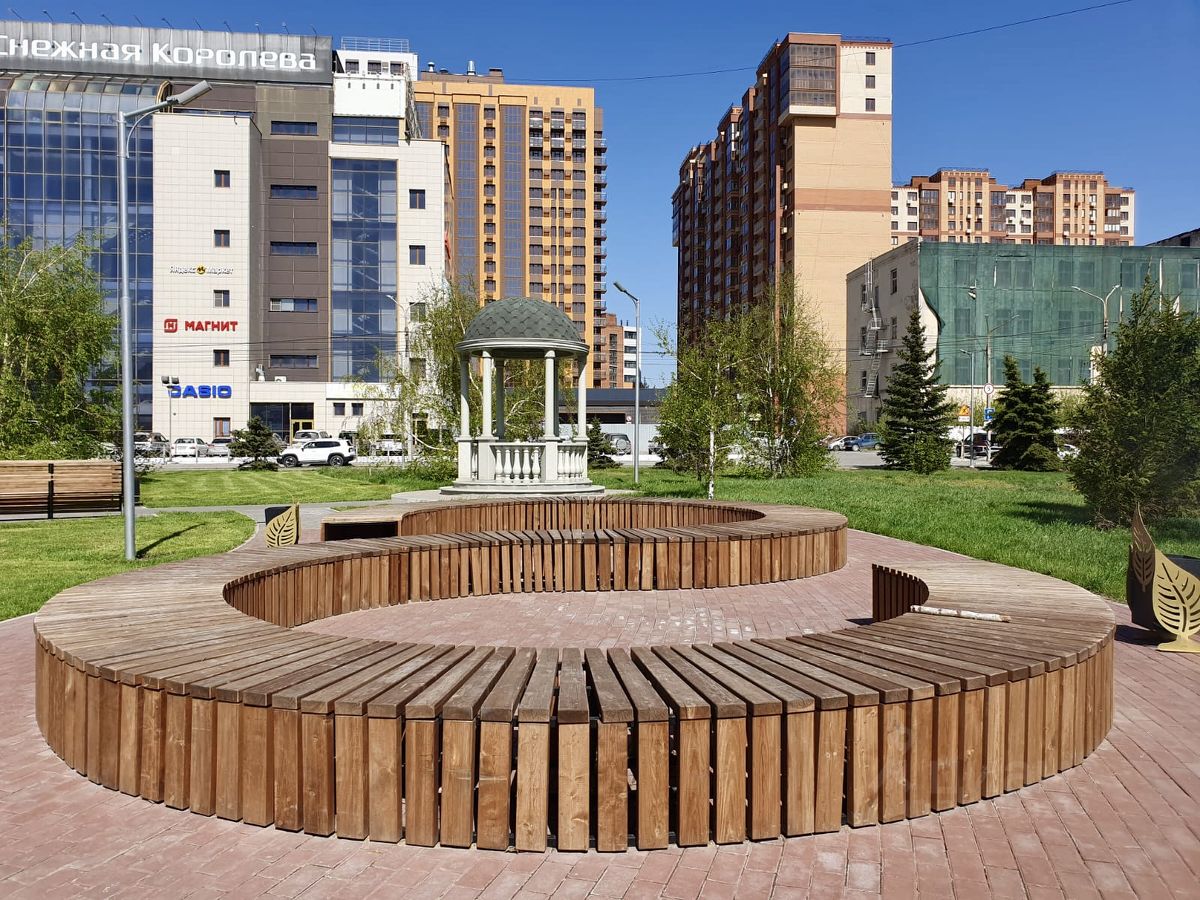Внутреннее пространство дома ограждено и благоустроено современной площадкой для отдыха и спорта. Продуманное освещение двора уличными фонарями. Красивая ночная подсветка фасада дома. В свободном доступе парковка для автомобилей.
