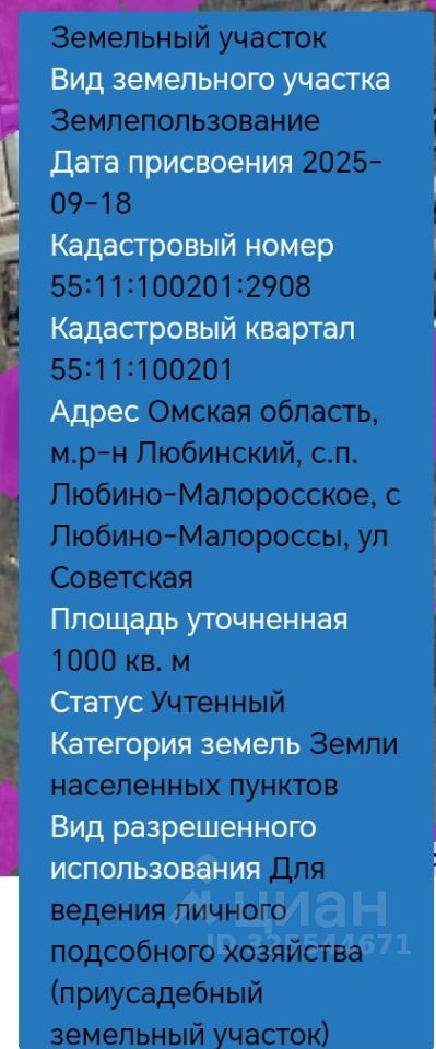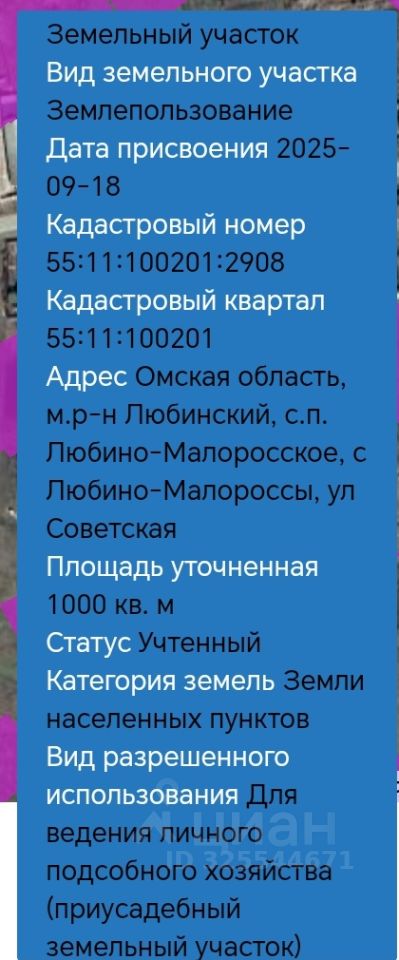 Местоположение: с. Любино-Малороссы, в 30 км от Омска. Площадь:10 соток. Подъезд:Асфальтированная дорога.