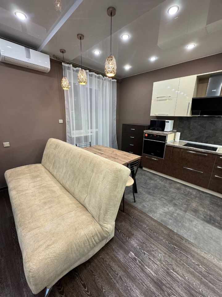 В квартире выполнен качественный евроремонт. Пространство студии продумано до мелочей: есть вся необходимая мебель как на кухне, так и в жилой зоне. Для вашего удобства установлена современная техника, включая кондиционер, холодильник, посудомоечную и стиральную машины, а также телевизор. Ванная комната оснащена полноценной ванной. Приятным бонусом станет наличие балкона, где можно отдохнуть после рабочего дня.