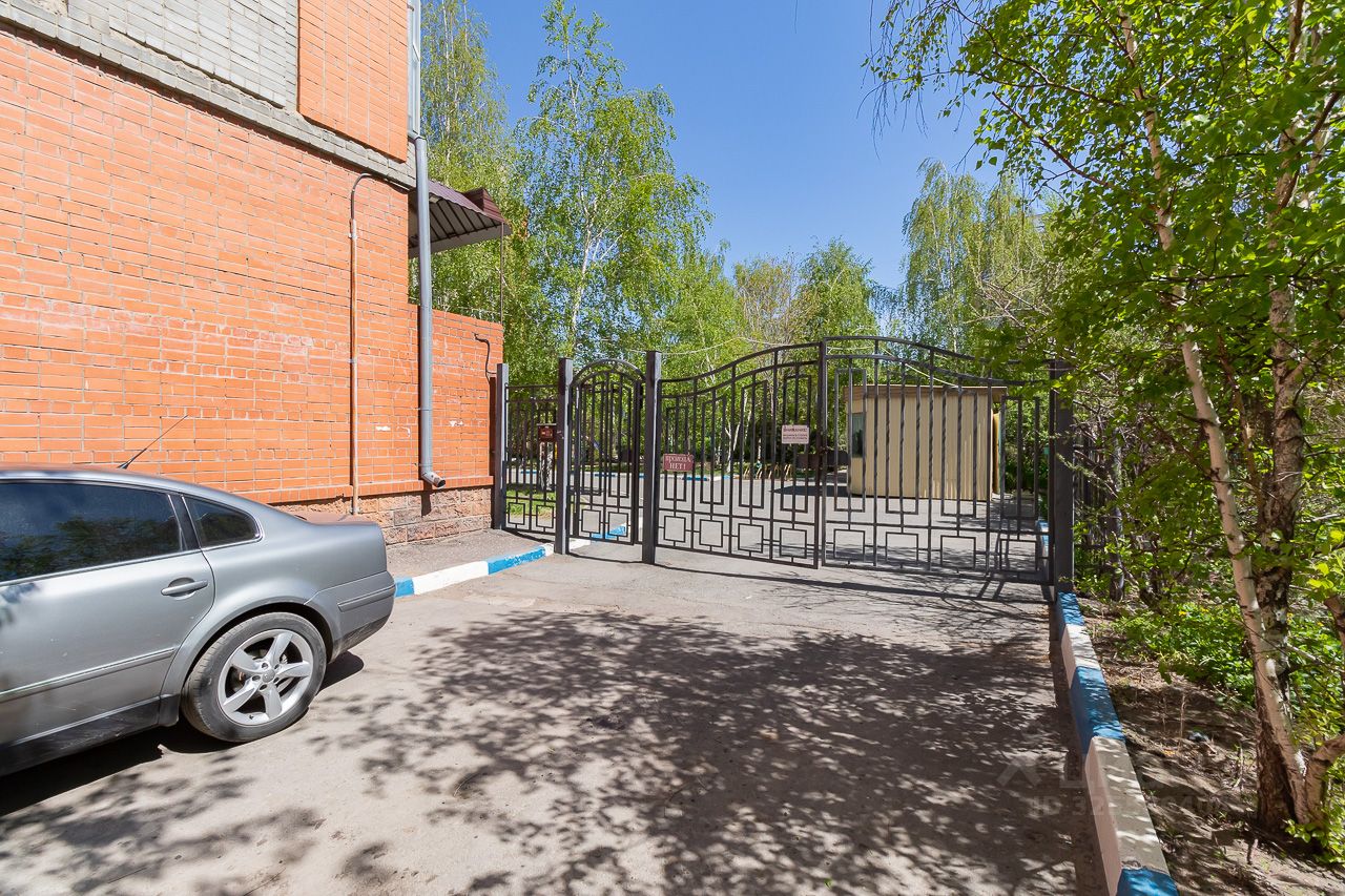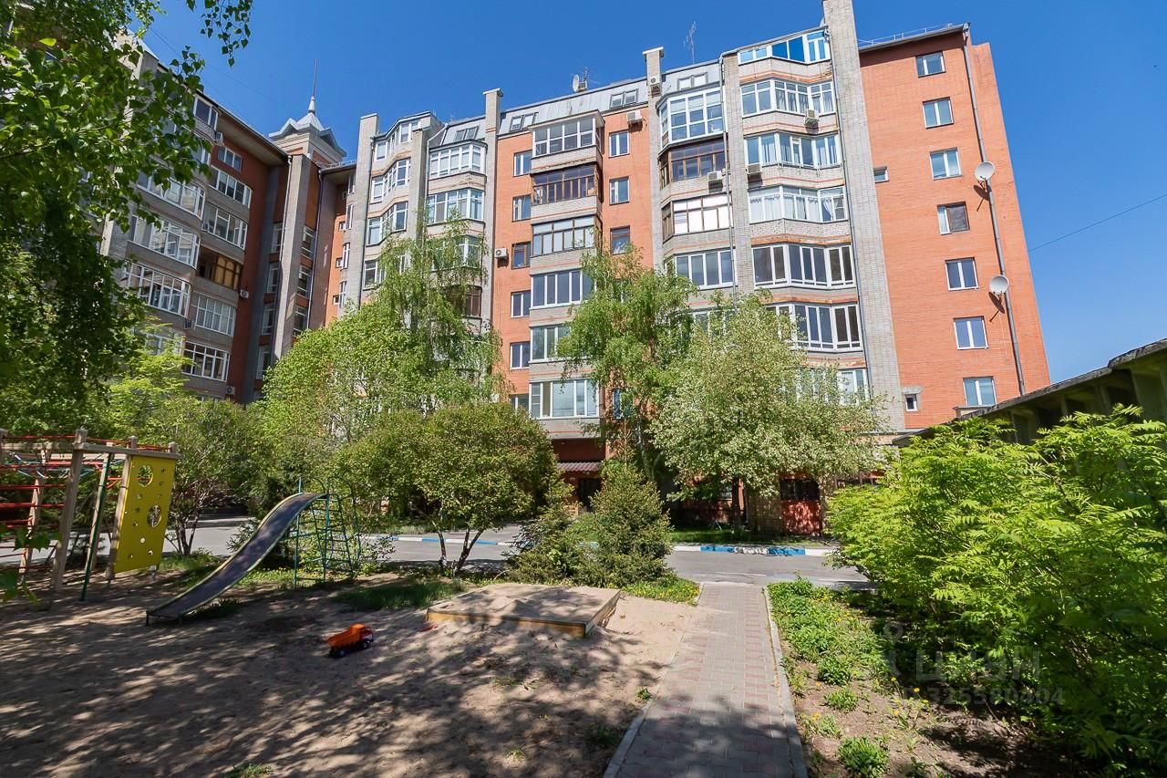 Территория дома огорожена и благоустроена: здесь есть детская площадка и зеленые зоны для отдыха.