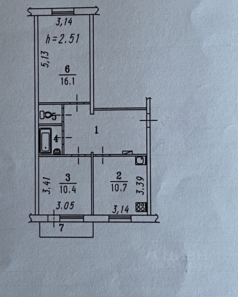 Общая площадь: 51,1 кв.м. + балкон 2,7 кв.м. Кухня: просторная, 10,4 кв.м. - мечта любой хозяйки! Санузел: раздельный, что очень удобно для семьи. Прихожая: большая и вместительная.