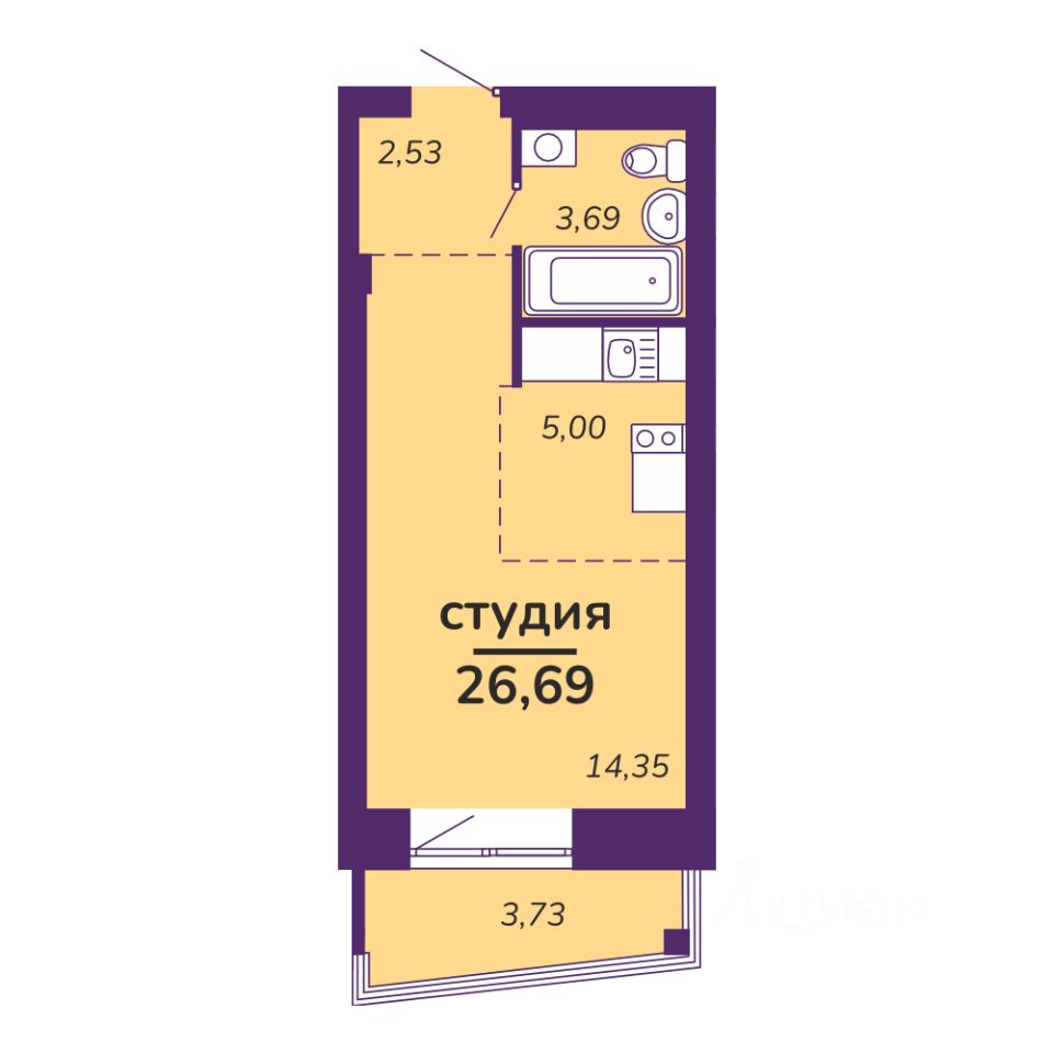 Общая площадь26,69 м2