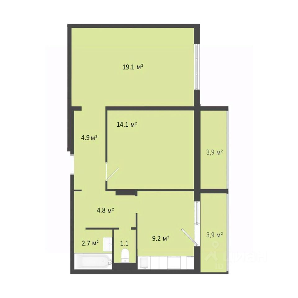 Общая площадь55,9 м2