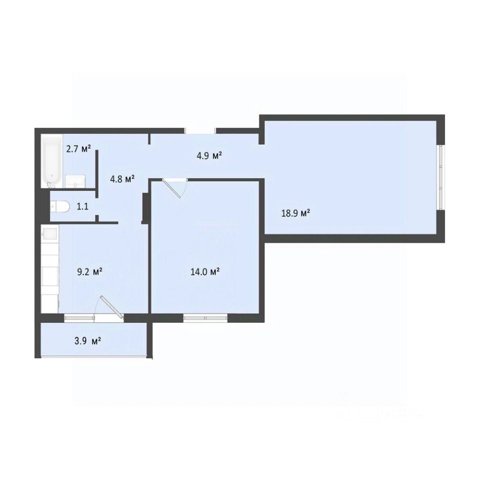 Общая площадь55,6 м2