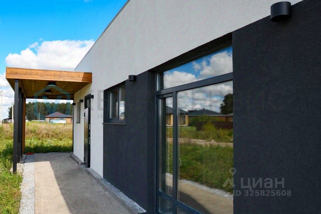 О доме: Дом одноэтажный в стиле минимализм. Планировка включает в себя: кухню-гостиную, три спальни, одна из которых мастер-спальня ( гардеробная + санузел), 2 санузла, техническое помещение и холл. Зона гостиной выходит на заднюю часть двора, с видом на лес-это отличная возможность сделать там террасу и наслаждаться видом и тишиной, а внешнее освещение на фасаде только добавит уюта. Ремонт: Дом изготовлен по надежной технологии из монолитно- бетонного каркаса. Износостойкий фасад с применением декоративной штукатурки и панорамные окна подчеркнут современный стиль вашего дома. Качественный фундамент (монолитная утепленная плита с усиленной фундаментной лентой) обеспечит надежность и долговечность дома. Материал кровли: технониколь стеклоизол, нижний и верхний слой. Кровля направляемая на битумной основе. Сделаны воронки для вывода воды с крыши. По углам отмостки сделаны водосборные ''стаканы'', которые в дальнейшем уводят воду от дома. Участок: правильной, квадратной, формы, ровный и, главное, сухой! Коммуникации: вода- скважина, электричество 15 кВт, канализация - септик, газ в поселке. В доме теплый пол, выводы под монтаж конвекторов, электрокотел. Отделка вайтбокс.