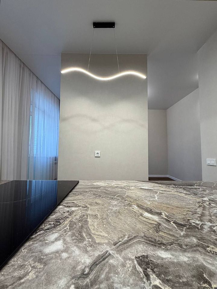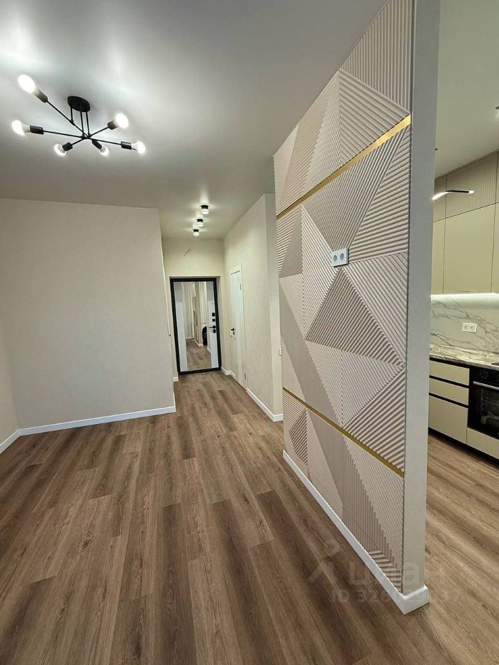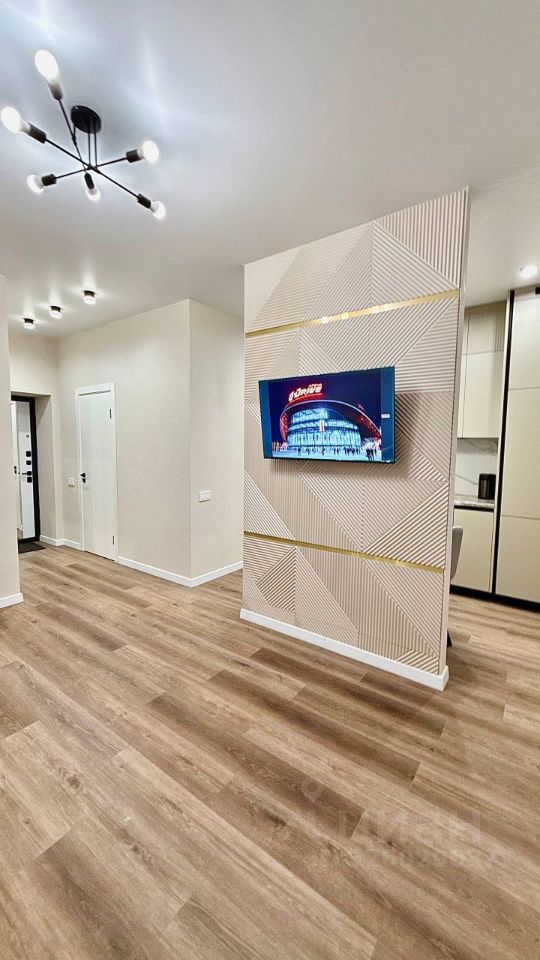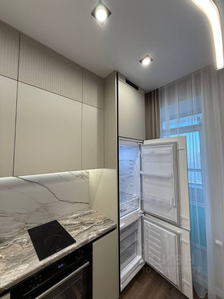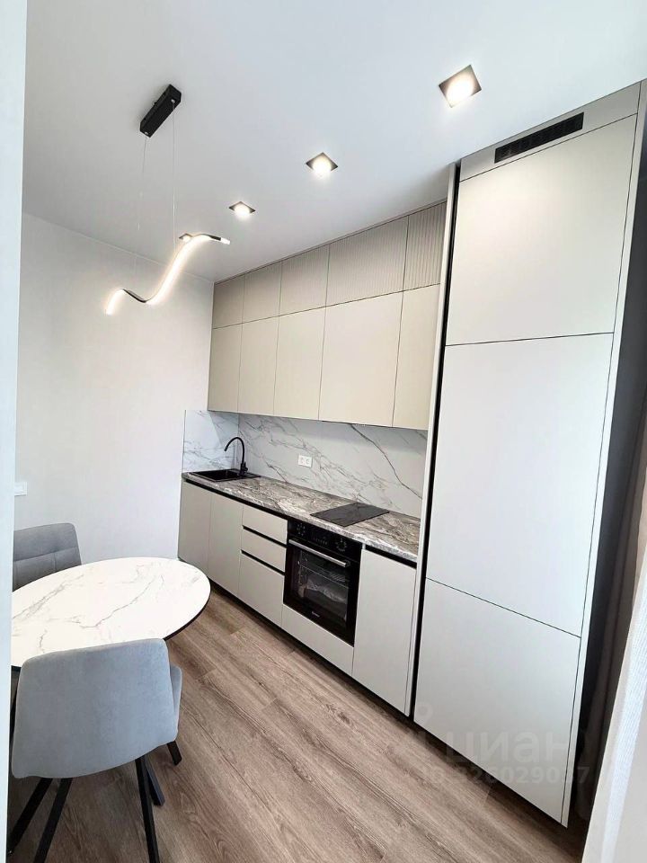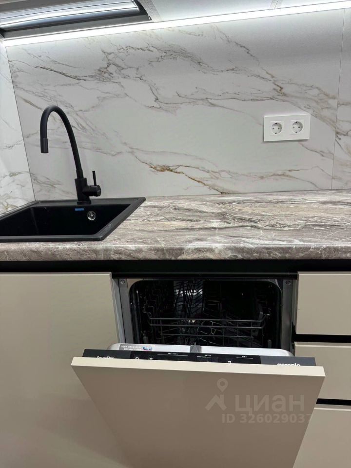 Встроенный кухонный гарнитур с раковиной и краном Холодильник, индукционная варочная панель, электрический духовой шкаф, посудомоечная машина 45 см., вытяжка, стиральная машина, смарт-телевизор диагональю 43 см., СВЧ-печь, чайник) Диван в процессе приобретения