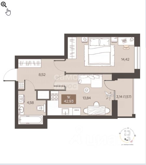Предлагаем к продаже однокомнатную квартиру площадью 42,93 м.кв , площадь комнаты 14,42, кухня 13,84 м.кв с выходом на лоджию 3 м.кв. в монолитно-кирпичном доме с вентилируемым фасадом от надежного застройщика г. Омска Квартира с ремонтом от застройщика и частичной меблировкой, закрытые дворы без машин, благоустроенная территория, собственная газовая котельная, полезная коммерция на первых этажах и соседский центр для организации досуга. Ремонт от застройщика включает в себя: • Декоративная штукатурка стен • Ламинат-кварцвинил на пол • Кафель в санузле • Натяжные потолки в комнатах, санузлах и кухне • Ванна, унитаз, раковина, зеркало: полностью укомплектованный санузел • Межкомнатные двери В подарок: варочная панель!