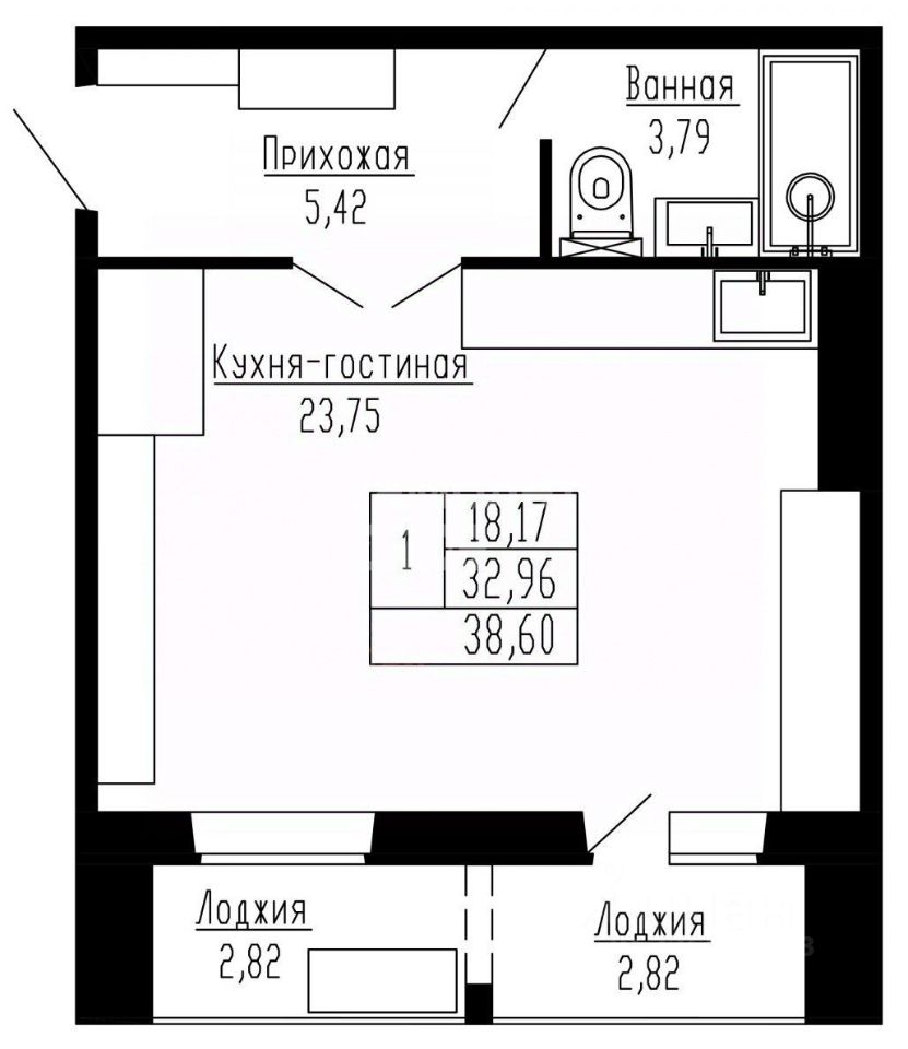 Просторная лоджия площадью более 5,5 кв.м.