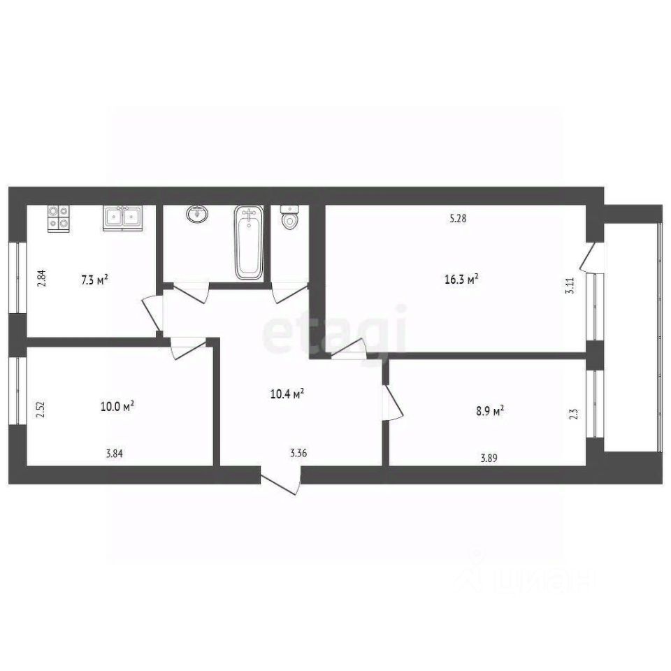 Компания Этажи предлагает просторную трехкомнатную квартиру по демократичной цене.