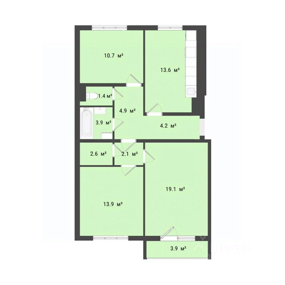 Общая площадь76,3 м2