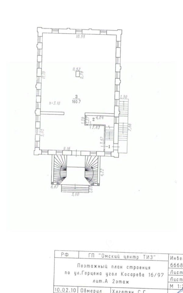 Помещение 170.5 м2 расположено в центре города на втором этаже отдельно стоящего здания по адресу ул. Герцена, 16.