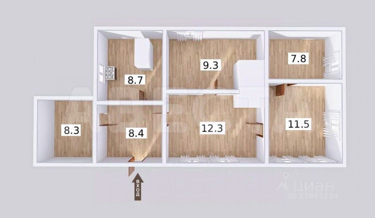 Общая площадь58 м2