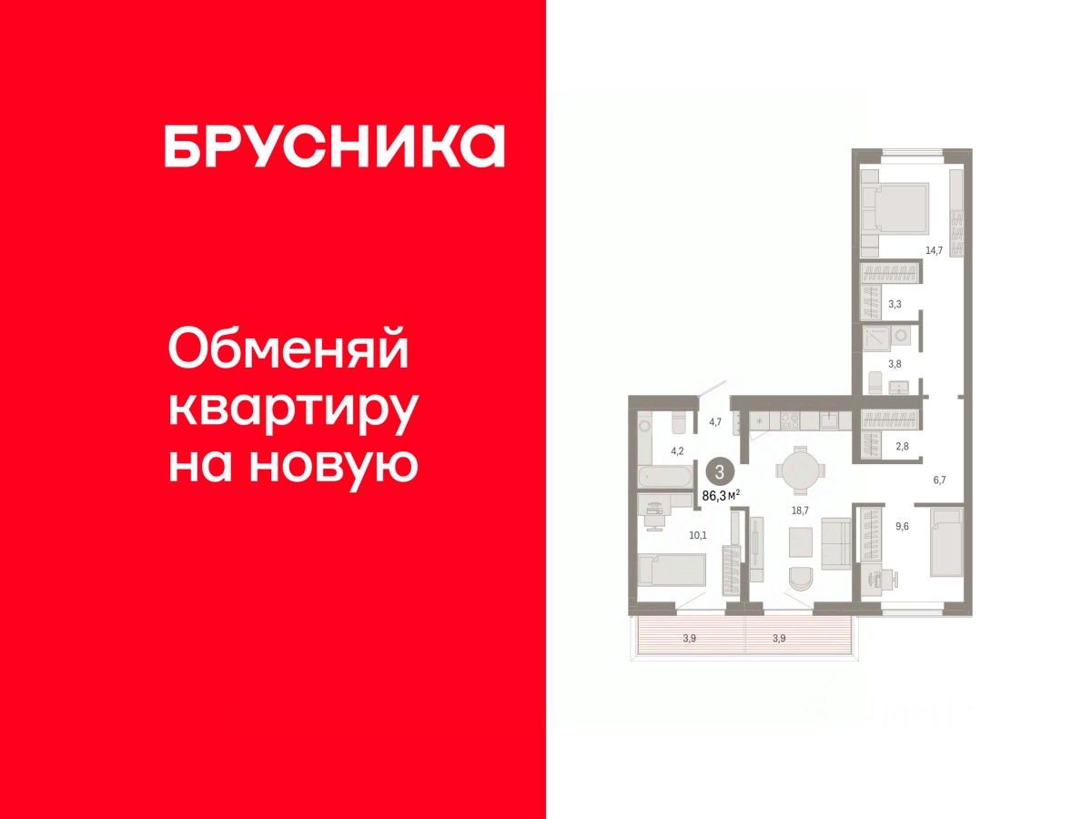 продам 3-к квартира14 090 000 ₽