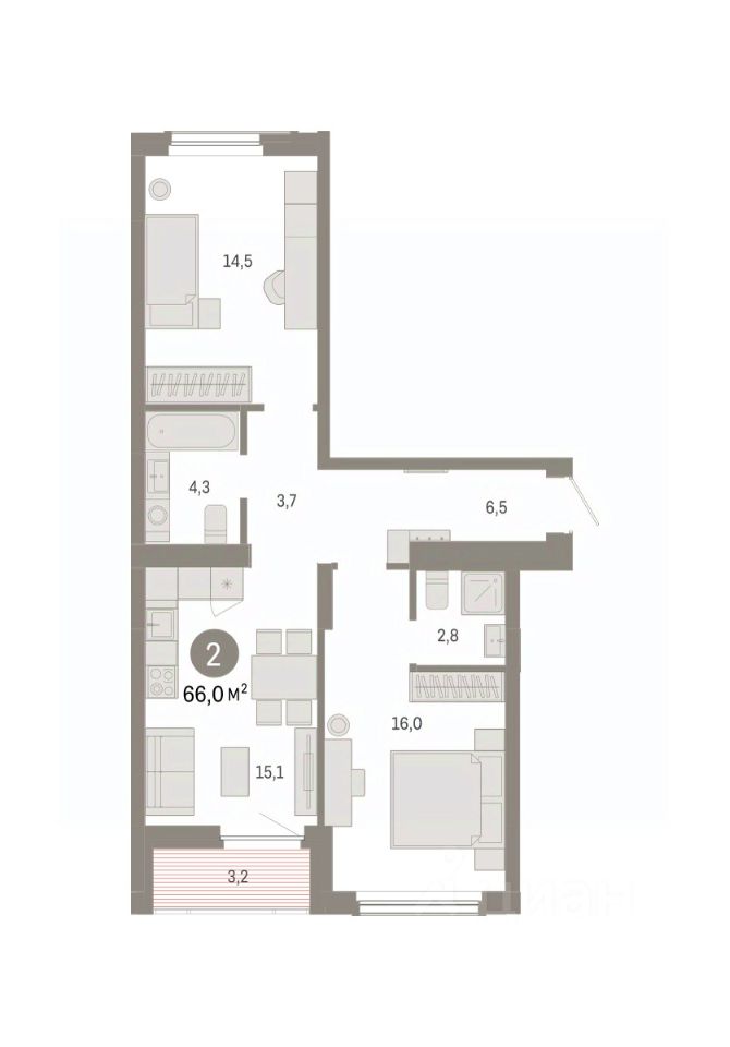 Общая площадь66 м2