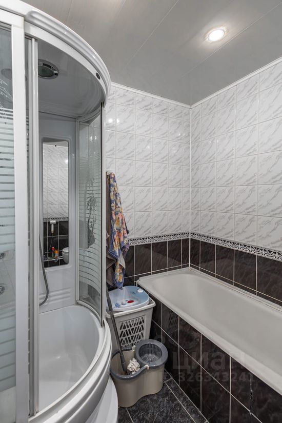 С/у совмещен. В стоимость квартиры входит: кухонный гарнитур с раковиной, электрическая плита, вытяжка, холодильник, стол, стиральная машина. В комнате - встроенный шкаф, двуспальная кровать, 2 стола. В с/у - раковина, зеркало, ванна, душевая кабина, полотенцесушитель. Развитая инфтраструктура. Общественный транспорт в пешей доступности.