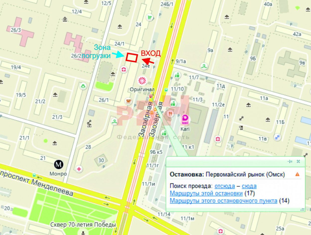 - Назначение: Отлично подойдет как под торговлю, так и под организацию кафе / ресторана / бара. - Расположение: Первая линия по ул.Заозерная, на пешеходном трафике в глубь района. - Парковка: парковка вдоль улицы. - Высота: переменная от 4 до 4,5 метра -Вход: Отдельный вход с улицы -Электроэнергия: 40 кВт. При необходимости можно увеличить. -Водоснабжение: собственная мокрая точка и с/узел в помещении -Зона погрузки: собственная отдельная зона с обратной стороны от входа - Дополнительно: Собственная входная группа с выходом на пешеходную зону, В шаговой доступности остановка ''Первомайский рынок'', Возможность монтажа вывески над входной группой. Высокий пешеходный трафик.