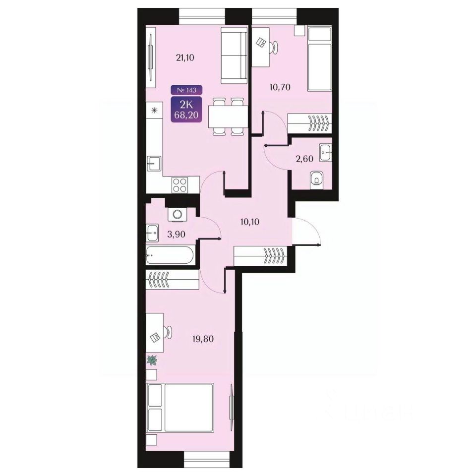 Общая площадь68,2 м2