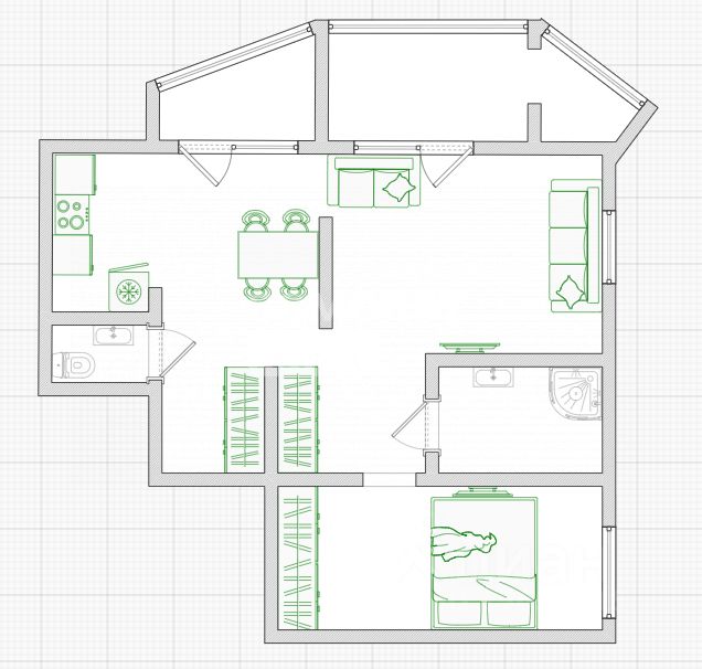Планировка квартиры продуманная и функциональная: большой холл, изолированная спальня с вместительной гардеробной, встроенная мебель в которой позволяет с легкостью поддерживать уют и порядок, по-настоящему шикарная изолированная ванная комната с душевой кабиной и отдельный санузел, обеспечат удобство для всей семьи.