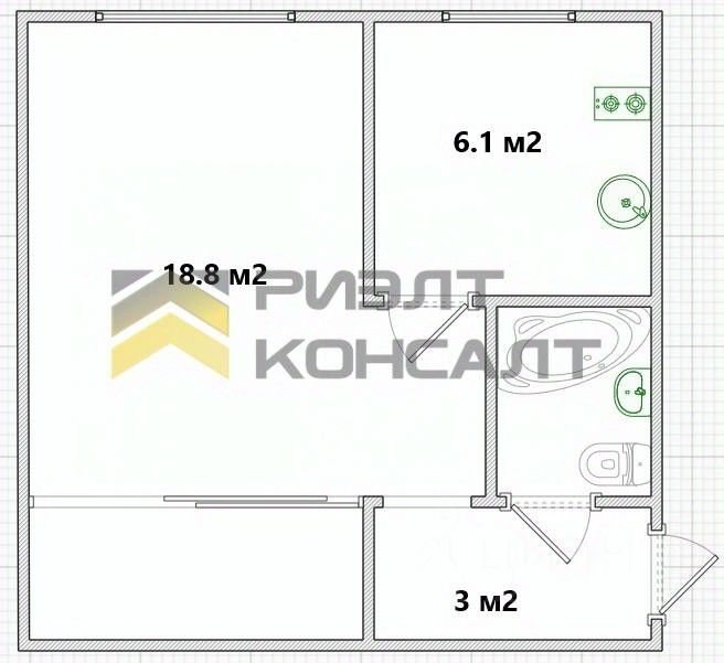 Что есть в квартире: холодильник, стиральная машина, встроенная газовая поверхность, духовой шкаф, кухонный гарнитур, обеденная зона, прихожая, диван, шкафкупе с кроватью (кровать можно собрать и спрятать за нишей).