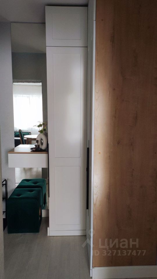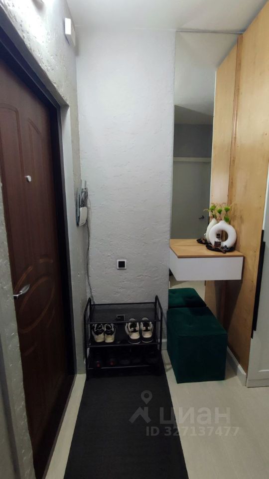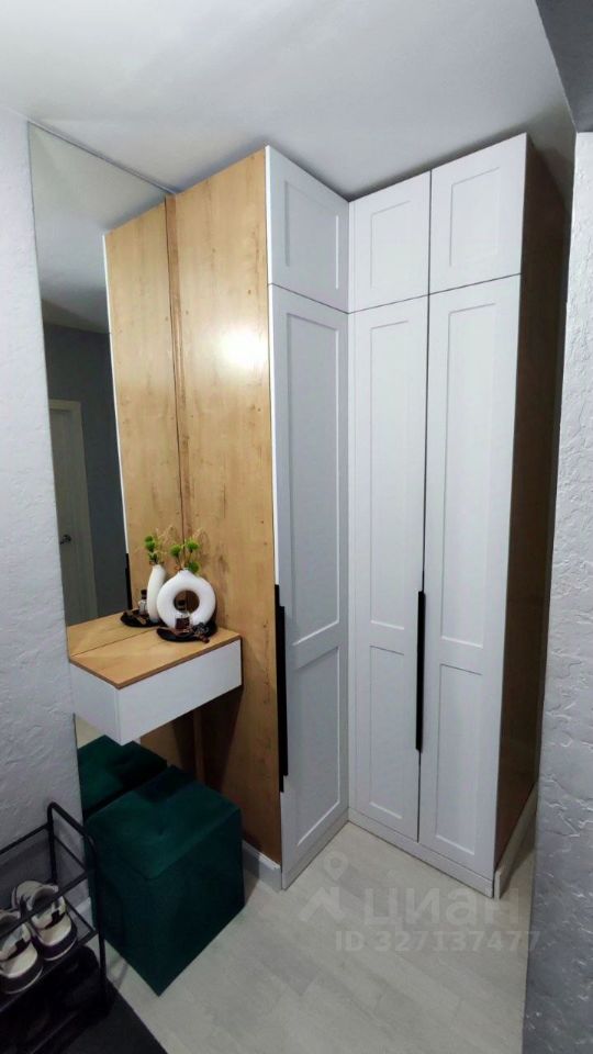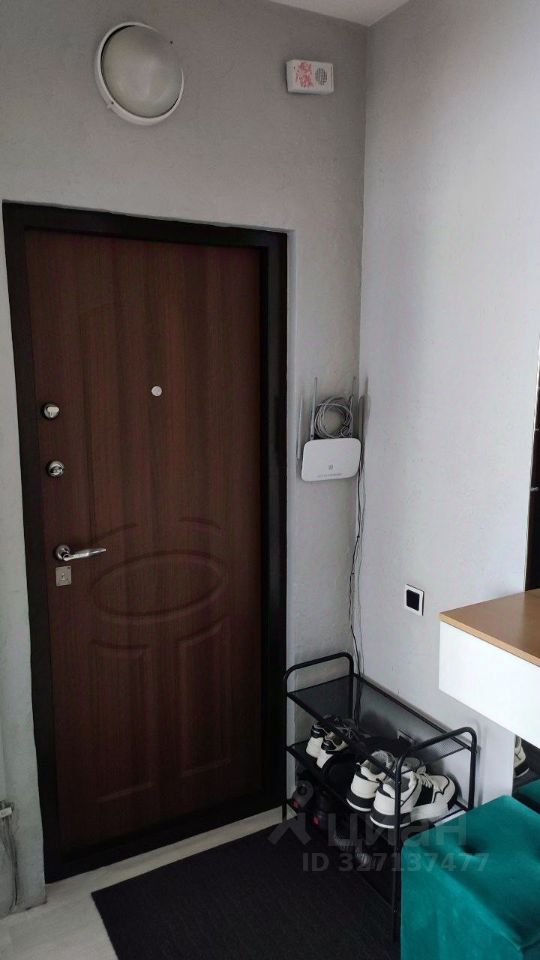 На лестничной площадке имеется кладовая с установленными полками, что очень актуально для однокомнатной квартиры.