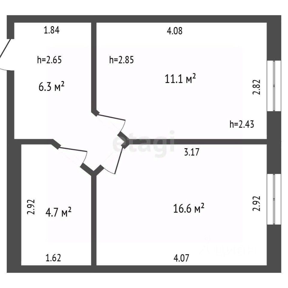 Общая площадь33,3 м2