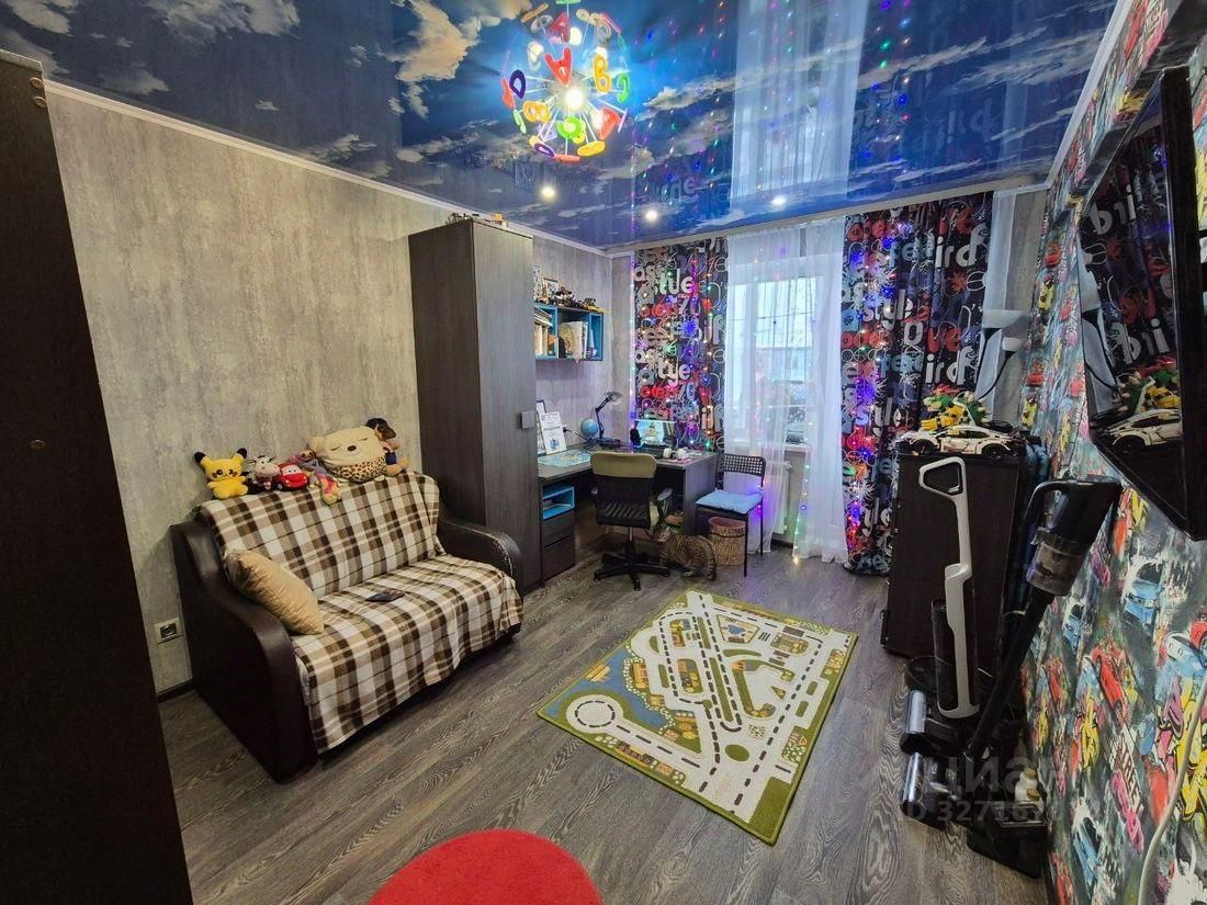 Кухонный гарнитур со встроенной техникой - духовой шкаф, варочная панель, посудомоечная машина, вытяжка, холодильник, микроволновка, стол с 3 табуретками. Компьютерный стол и раскладной стол, шкаф-купе кондиционер. В детской: раскладной диван, раздвижной шкаф. В ванной: душевая кабина, стиральная машина, сантехника. Стеллаж в кладовой, шкаф в коридоре.