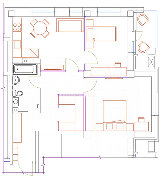 *На фото представлен возможный вариант Вашего дизайнерского проекта, квартира продается без мебели.
