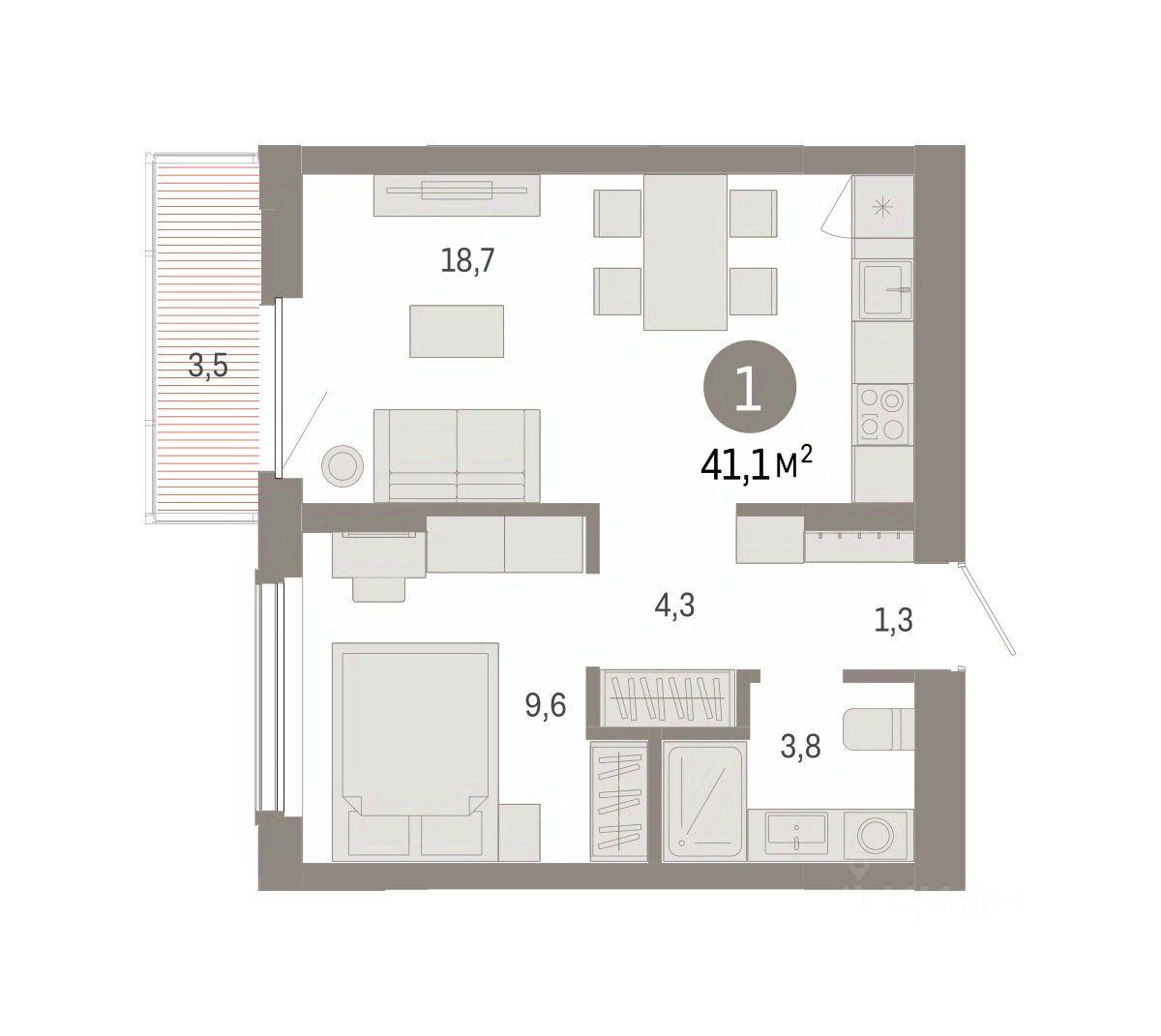 Общая площадь41,14 м2