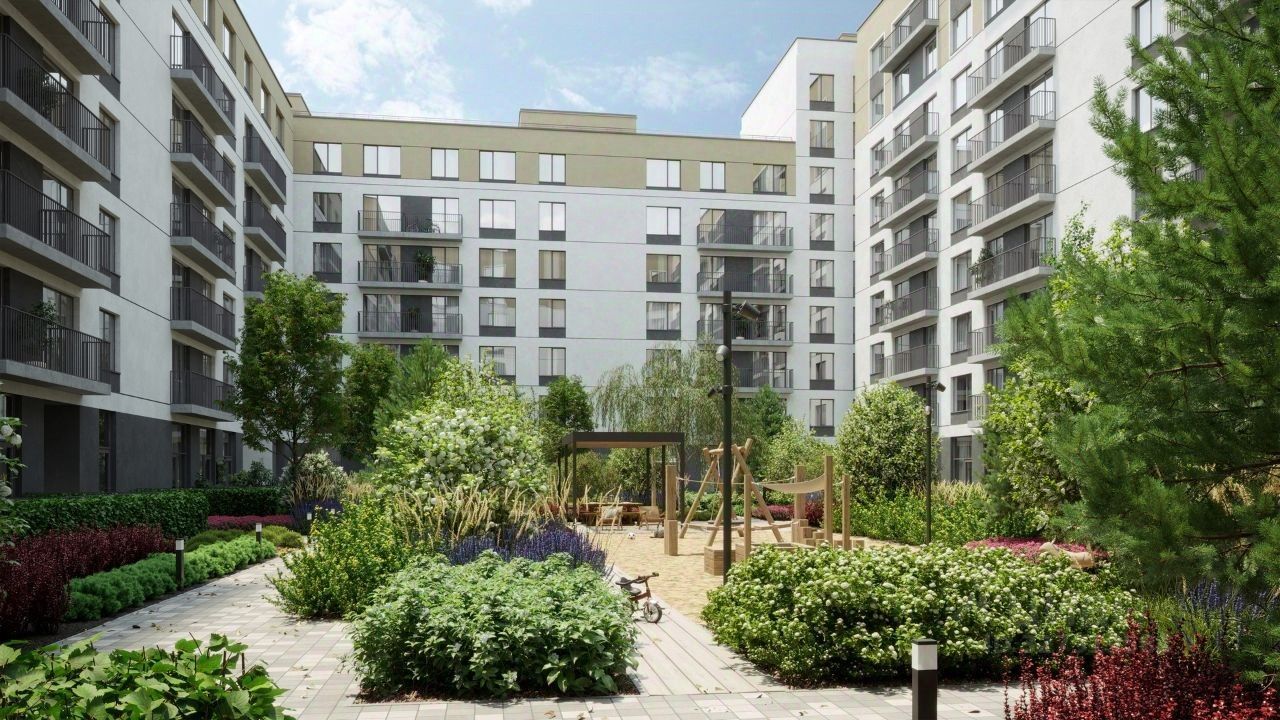 Во дворе нет машин. Это приватное пространство, попасть в которое могут только жители. Здесь спроектированы: променад, лаунжи с садовой мебелью, где, развалившись на шезлонге, можно почитать или поработать, и детские площадки.