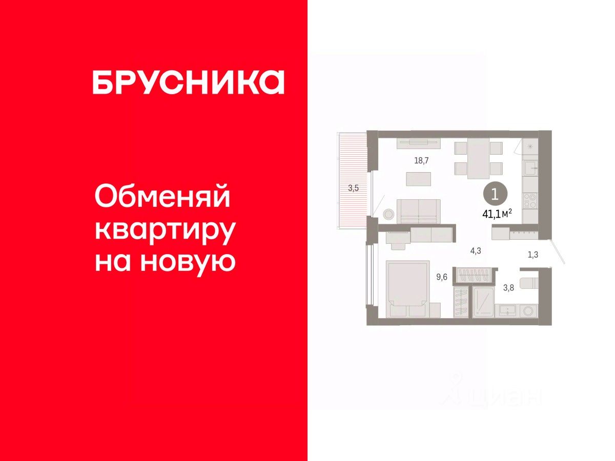 Квартира с кухней-гостиной и одной спальней в Кварталах Драверта. Особенности планировки: балкон, новые лоты, предчистовая отделка, разнесённые спальни, тёплая лоджия. квартиры в нашей базе: ДВТ06-Ж2.2.5.