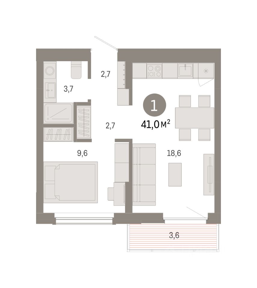 Квартира с кухней-гостиной и одной спальней в Кварталах Драверта. Особенности планировки: балкон, новые лоты, предчистовая отделка. квартиры в нашей базе: ДВТ06-Ж6.5.2.