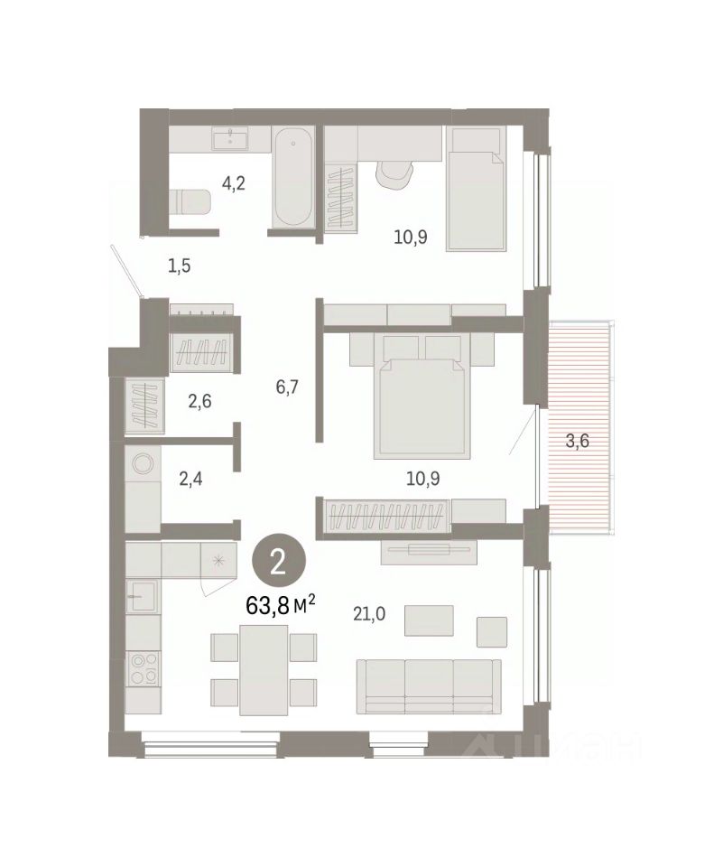 Общая площадь63,8 м2