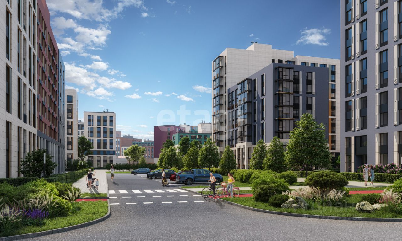Новый микрорайон с современными строительными тенденциями и комплексным развитием территории. Включает в себя все, что необходимо для комфортной жизни: благоустроенные дворовые зоны без машин, медицинский центр, детский сад, школа, встроенные коммерческие помещения, паркинги.